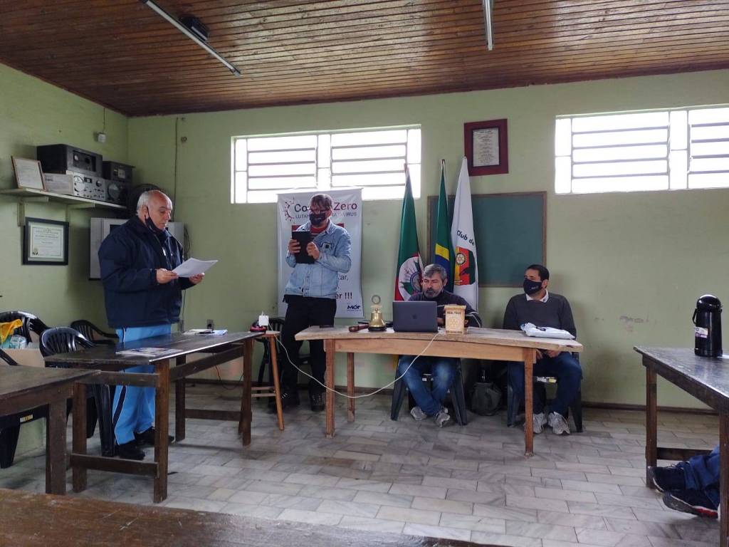 O clube realizou neste dia 14 de julho de 2021, as 12:20, a sua primeira reunião ordinária do ano rotário 21/22. O formato foi hibrido, com sócios presente na sede do Clube, seguindo as regras de distanciamento e proteção devido a pandemia, e com sócios on-line via internet. Na ocasião além de assuntos gerais do Clube, foram homenageados os sócios 100% da gestão 20/21, pelo Presidente 20/21 Leandro Hahn; e o Presidente atual Claúdio Louzada oficializou com a entrega do PIN da atual gestão aos componentes de sua Diretoria. Alguns momentos da reunião.