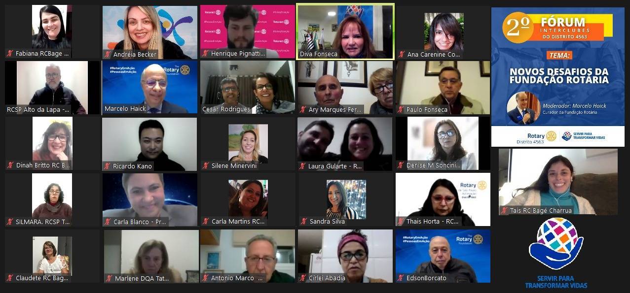 Terça feira dia 03 de agosto o Rotary Bagé Charrua participou do 2° Fórum Interclubes do Distrito 4563 ano rotário 2021-22. A força da união de 40 clubes em busca de capacitação para servir melhor. O tema foi NOVOS DESAFIOS DA FUNDAÇÃO ROTÁRIA e o moderador o Curador Marcelo Haick.