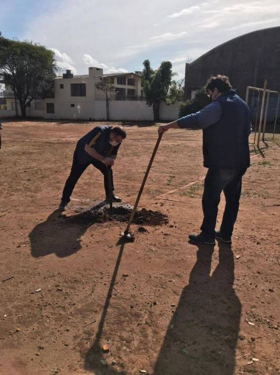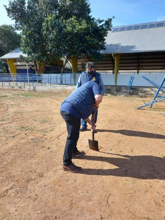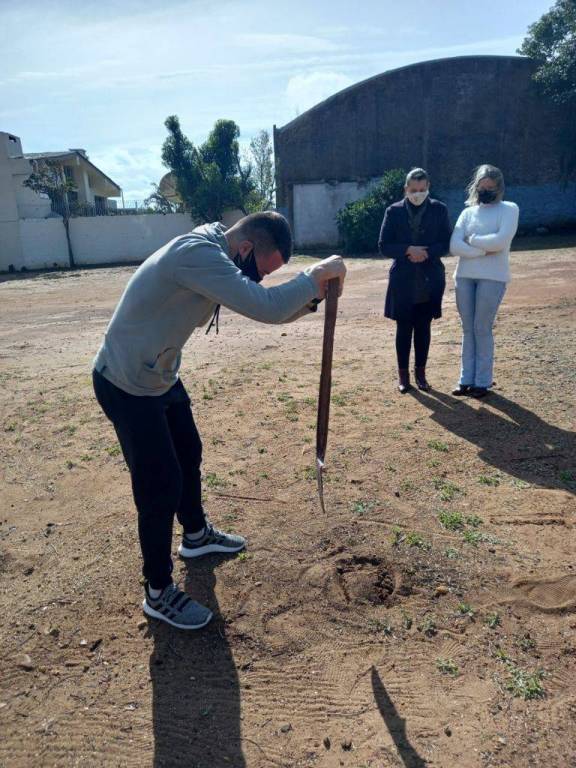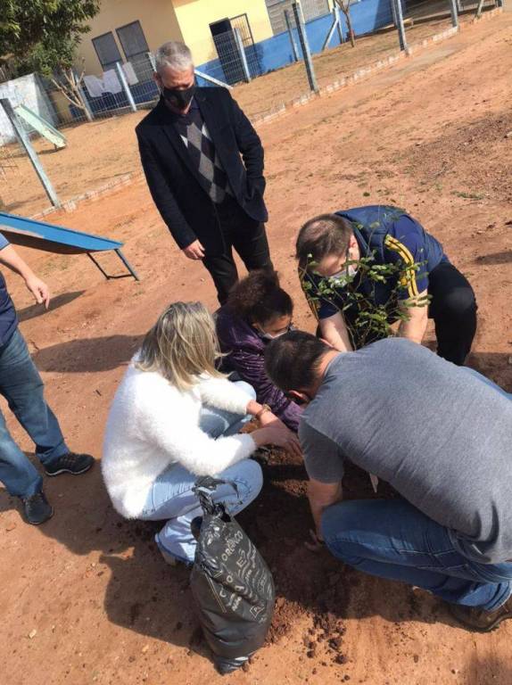 Na ensolarada tarde desta quinta-feira (05/08/21), realizou-se na EMEF Doutor Getúlio Vargas, o plantio de mudas da árvore “pau ferro” no pátio da escola. O movimento rotário possui metas anuais de plantio de árvores, para fins de preservação do Planeta Terra. Nesta ocasião, contamos com o apoio do viveiro Municipal, e da Secretaria Municipal de Meio Ambiente, representado neste dia pelo secretário Geraldo Fogliarini. Estiveram presentes para realização desta atividade, o presidente da gestão 2021/2022 Bernardo Schwab, e os companheiros Fábio Brum, Jonatan de Moraes, Michele Oliveira, Merli Patrícia Tischler, juntamente com a equipe diretiva da escola, e as alunas Talia, Caroline, Maria Luiza, Valentina e Lúcia Helena, que se tornaram madrinhas das árvores e ajudarão a cuidá-las.