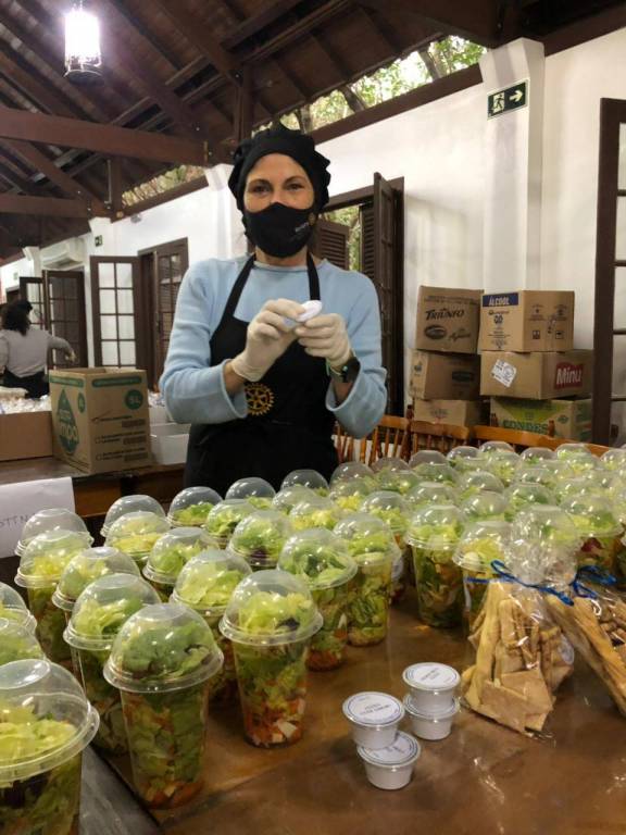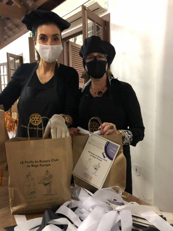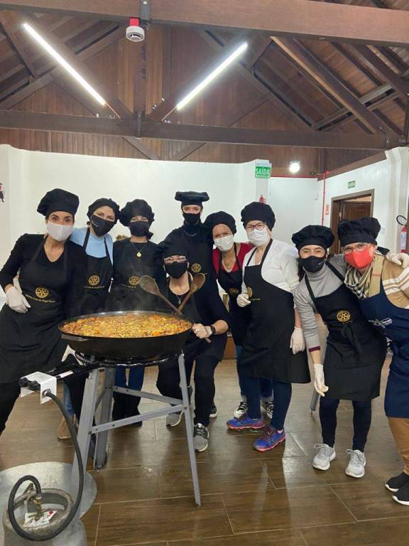 Domingo dia 22 de agosto de 2021 o RC de Bagé Pampa realizou a sua IX tradicional Paella Campeira. Essa ação já é super conhecida no nosso Club e é a segunda edição no formato delivery. Fizemos 300 porções de Paella preparada com ingredientes deliciosos, acompanhando: 500g de Paella + Salada no pote + Palinhos salgados com 2 sabor de pastinhas + 1 porção de doce de leite (receita da casa) . Todos os ítens foram preparados pelas companheiras que dividem-se em grupos contendo 10 pessoas aproximadamente em cada setor e no domingo todas se encontram para a montagem dos kits. Nos preocupamos desde a embalagem até a forma da apresentação do nosso KIT, todos os itens foram entregues em uma sacolinha personalizada com o cardápio e todos os apoiadores do evento. O valor foi R$ 40,00 por pessoas e a entrega foi realizada a partir do meio dia de domingo.