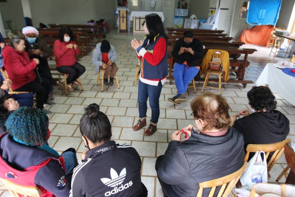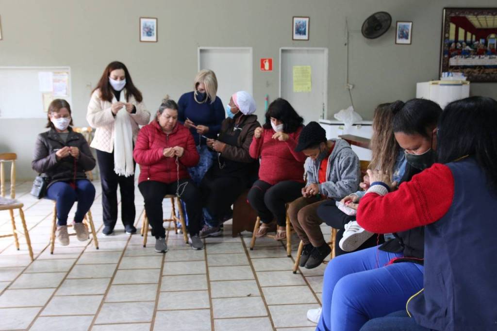 Início do Projeto Ponto a Ponto - Oficina de Crochê na comunidade Nossa Senhora das Dores do Bairro Mauá. O Projeto será realizado todas as sextas-feiras à tarde com pessoas da comunidade. Será ministrado por voluntárias do Rotary Club de Cachoeira do Sul Arrozais.