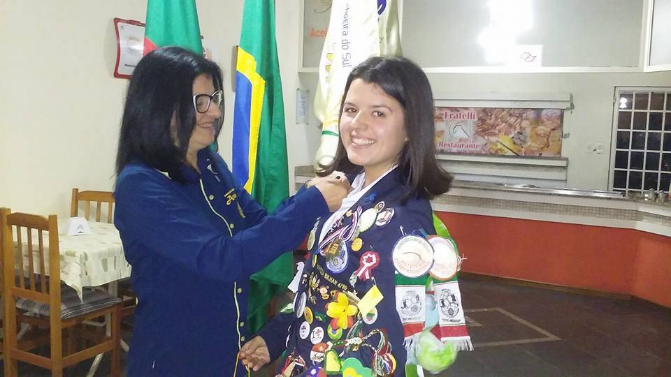 Presidente Isabel Bernardi recebendo a intercambista Vanessa Lange que retornou do Taiwan.