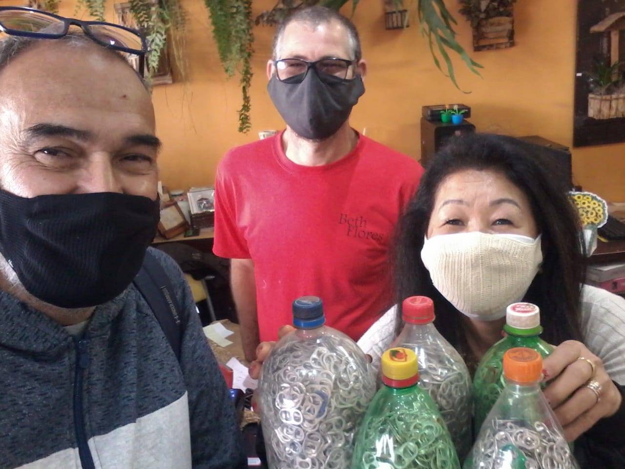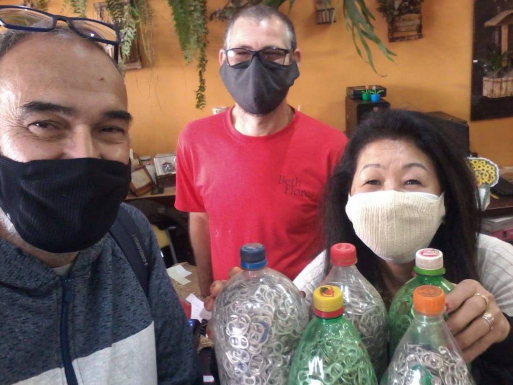 Também há foto dos lacres entregues pela SICREDI, lacres reunidos por colaboradores e associados.