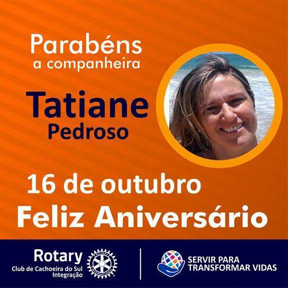 Parabéns companheira Tatiane, que tenhas muita saúde e realizações. Abraços