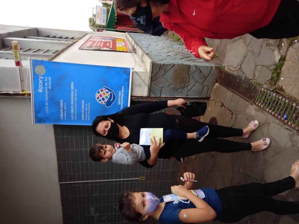 O Rotary Club de Cachoeira do Sul Arrozais participou das atividades do dia "D" da Campanha Nacional de Multivacinação. Realizou acolhida a quem foi no Posto de vacinação, dando informações e doces para as crianças. A ação foi durante todo o dia, com revesamento dos rotarianos.