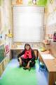 O espaço kids foi projetado e pensado em todos os detalhes para deixar o local o mais lúdico possível para que as crianças possam esperar as mães, enquanto as mesmas prestam depoimentos, muitas vezes relatando as agressões e violência sofridas. Esse universo infantil faz com que as crianças se distraiam longe as mães e evitem reviver todo o momento dolorido.