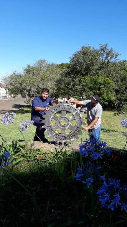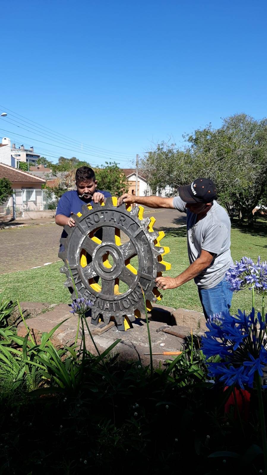 Na tarde de terça-feira, dia 26/10/2021, o Marco Rotário da Praça da Bica, em Cachoeira do Sul, passou por processo de manutenção e atualização para a nova marca do Rotary.