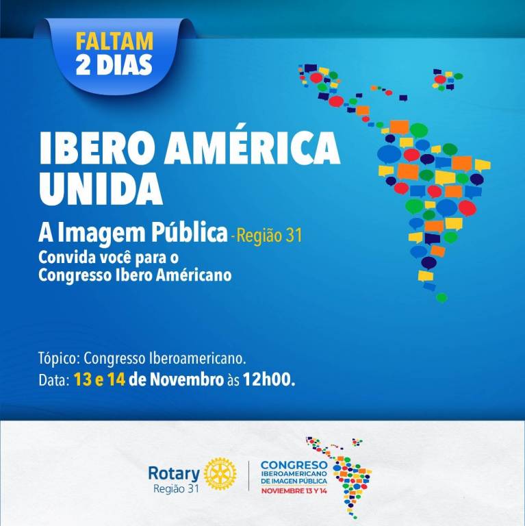 Nos dias 13 e 14 de novembro realizou-se o primeiro Congresso Interamericano de Imagem Pública, de modo virtual, onde reuniu 5 Zonas, 66 Distritos, 23 países que finalizou com mais de 5.000 participantes. Foi uma oportinidade de aprender com os maiores especialistas em publicidade, Imagem Pública e Marketing de alto impacto. Foram apresentados diversos projetos de vários países, do Distrito 4.780 foi apresentado o projeto Água e novas gerações de 2017. Esse Congresso ressaltou diversas vezes a importância da Imagem do Rotary , o que deve ser mostrado em cada ação. O foco deve ser o beneficiado e não o rotariano. Muito importante a capacitação de quem vai trabalhar com a imagem pública do Rotary.