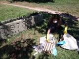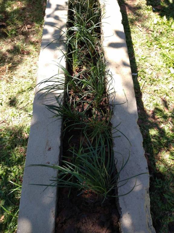 Plantação de gramas pretas pelos companheiros no Marco da Pracinha da Soares, Cachoeira do Sul