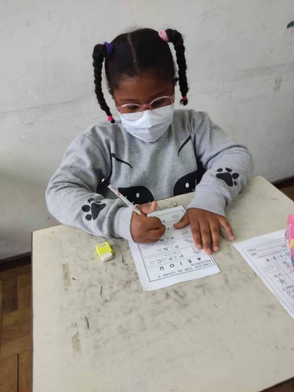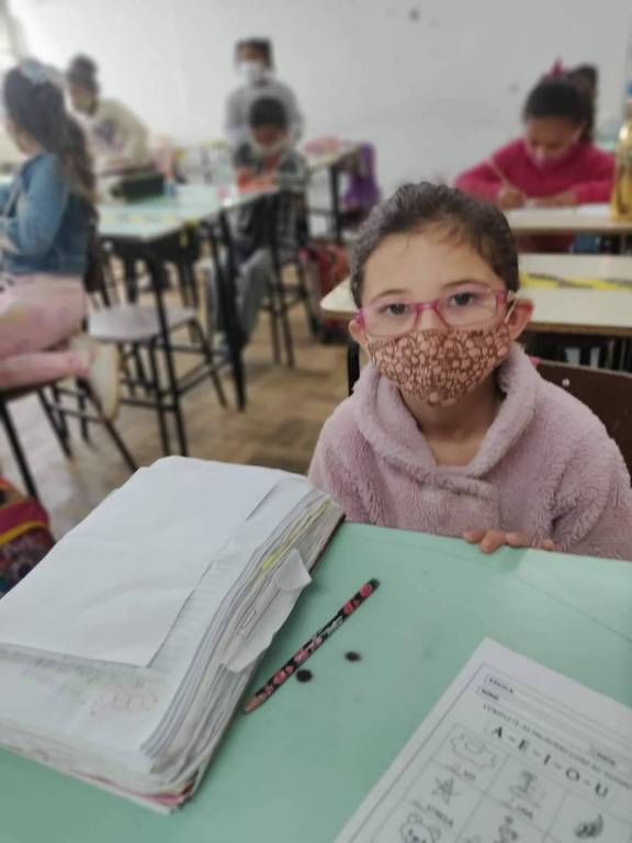 Algumas fotos recebidas por nossos companheiros das crianças utilizando os óculos, resultado do projeto Acuidade Visual.