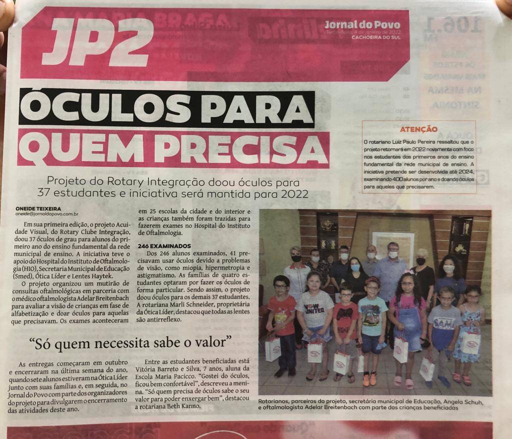 No dia 04/01/2022 o Jornal do Povo, circulante em Cachoeira do Sul e arredores fez uma reportagem sobre os resultados e o futuro do projeto Acuidade Visual.