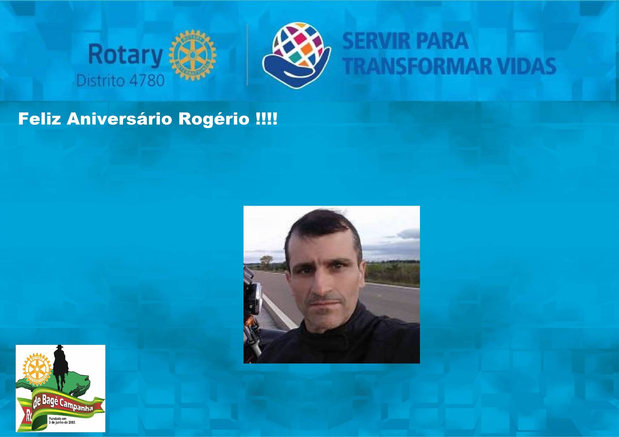 Hoje 12 de janeiro, o Companheiro Rogério esta de aniversário, o RC de Bagé Campanha deseja muita paz, saúde e muitas alegrias para o Companheiro. Muita Luz e parabéns !!!!!