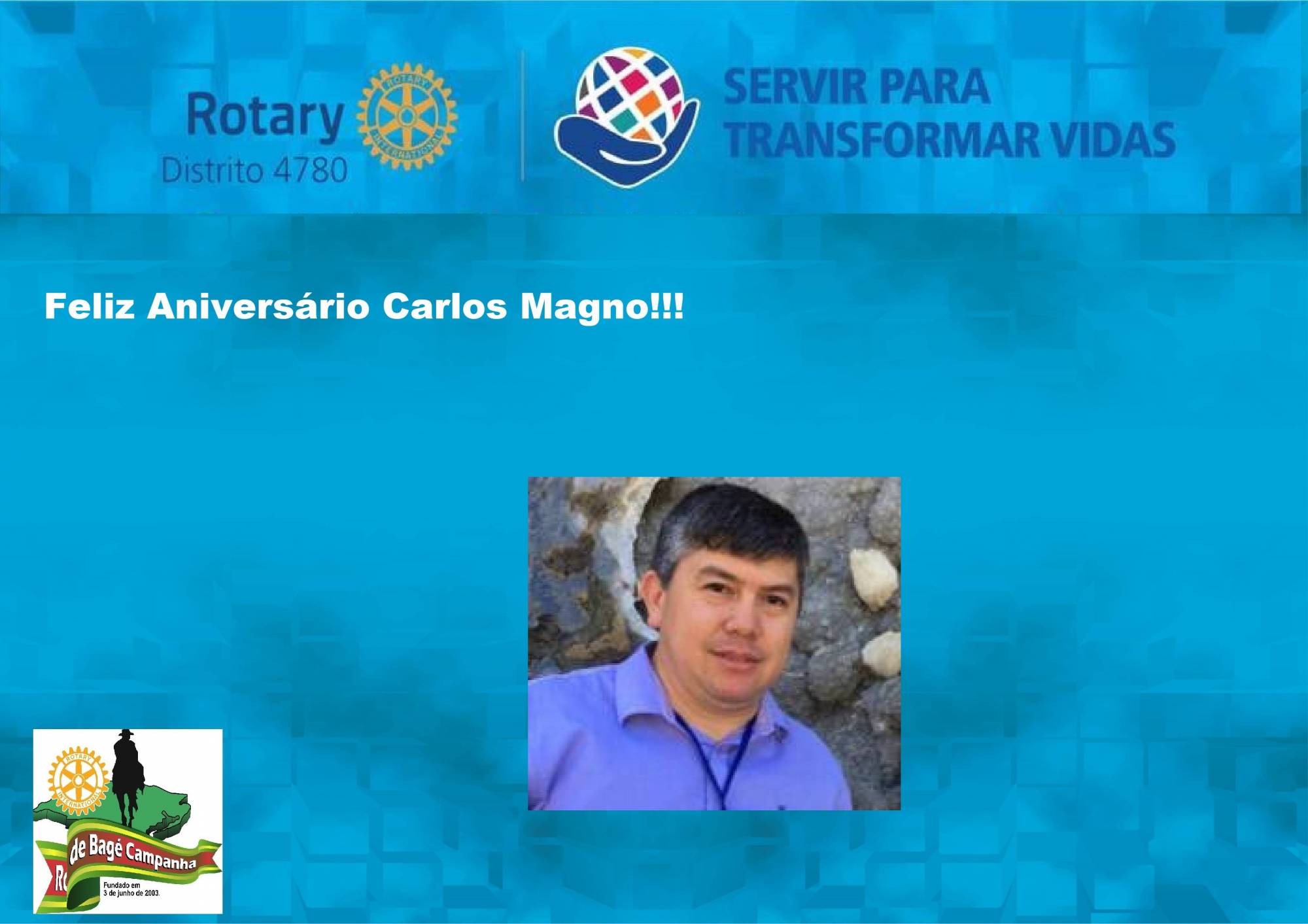 Hoje 1 de fevereiro, o Companheiro Carlos Cesarino esta de aniversário, o RC de Bagé Campanha deseja muita paz, saúde e muitas alegrias para o Companheiro. Muita Luz e parabéns !!!!!