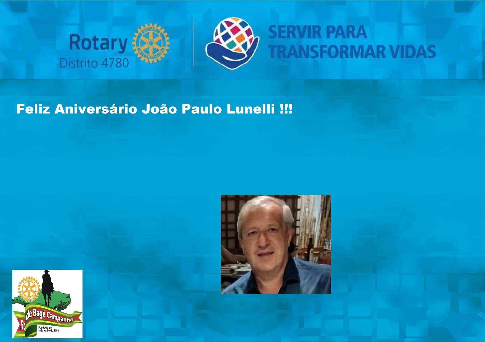 Hoje 16 de fevereiro, o Companheiro João Paulo esta de aniversário, o RC de Bagé Campanha deseja muita paz, saúde e muitas alegrias para o Companheiro. Muita Luz e parabéns !!!!!