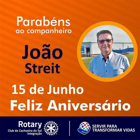 Parabéns companheiro João Streit, que tenhas muita saúde e realizações. Abraços