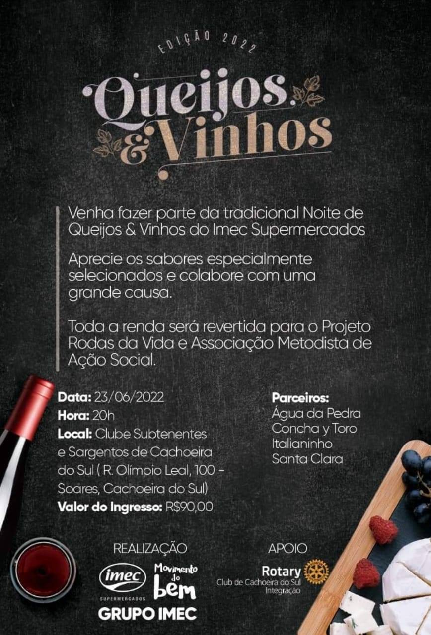 Venha fazer parte da tradicional Noite de Queijos & Vinhos do Imec Supermercados,