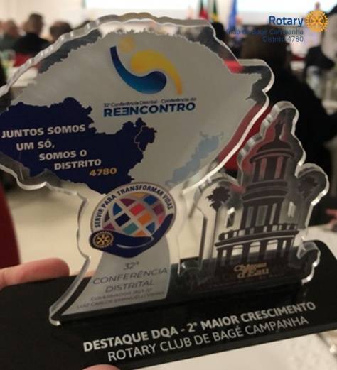 Rotary Club de Bagé Campanha é destaque com o 2º Maior Crescimento do Distrito 4780 na Gestão 2021-22.