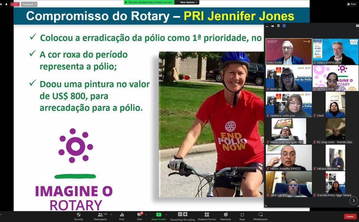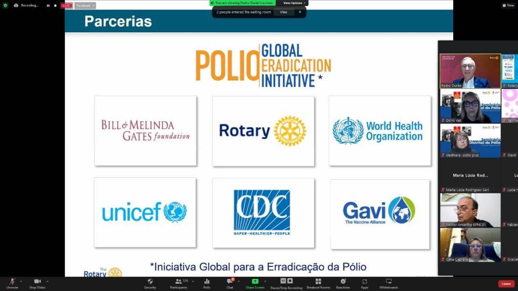 O Coordenador da Área 29, Pedro Durão abordou "O Panorama da Pólio no Mundo" e o Coordenador da Área 31, Nestor Amarilho falou sobre "A Importância do Engajamento dos Clubes para a Pólio não voltar ao Brasil". Segundo o Sistema de Informação do Programa Nacional de Imunizações, somente 54% das crianças completaram o esquema vacinal no ano passado, enquanto a meta que deve ser atingida para garantir a imunidade coletiva é de 95% das crianças vacinadas. Link da gravação no YOUTUBE do Distrito ... https://youtu.be/qm8_16hNMVM