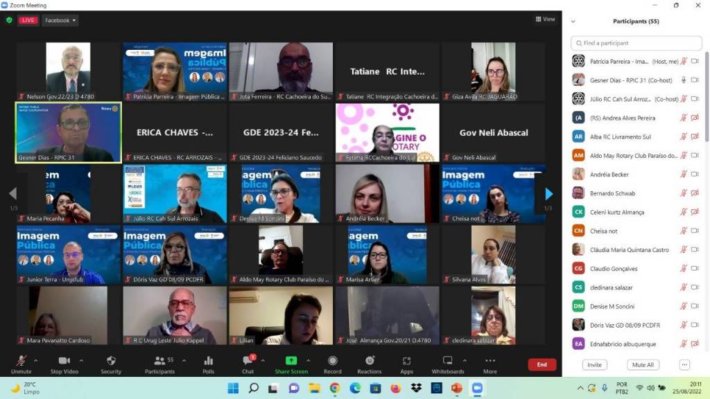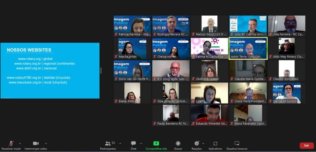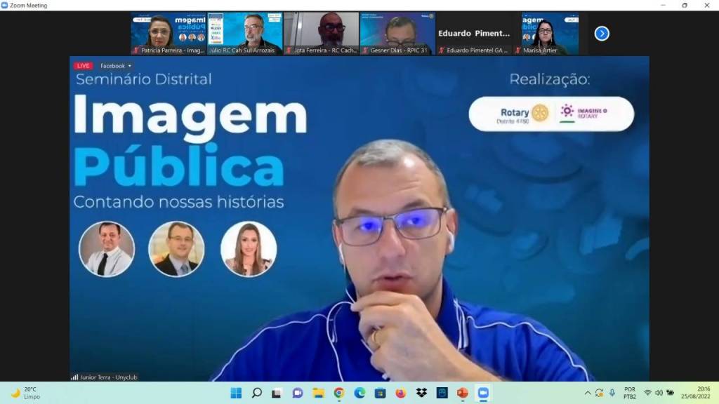 O evento on-line contou com a participação do Coordenador Regional de IP da Região 31, Gesner Dias. Ele apresentou as características da marca e da voz do Rotary, as quais são essenciais e devem ser seguidas como regra para contar as histórias dos clubes, as quais impactam a comunidade. Conforme Dias, os rotarianos são líderes à serviço da humanidade, conforme campanha de Imagem Pública chamada “Pessoas em Ação”. O intuito é fazer com que as pessoas se identifiquem mais com a história do Rotary e diminuir a lacuna entre a simples conscientização pública e o pleno entendimento sobre a nossa organização.