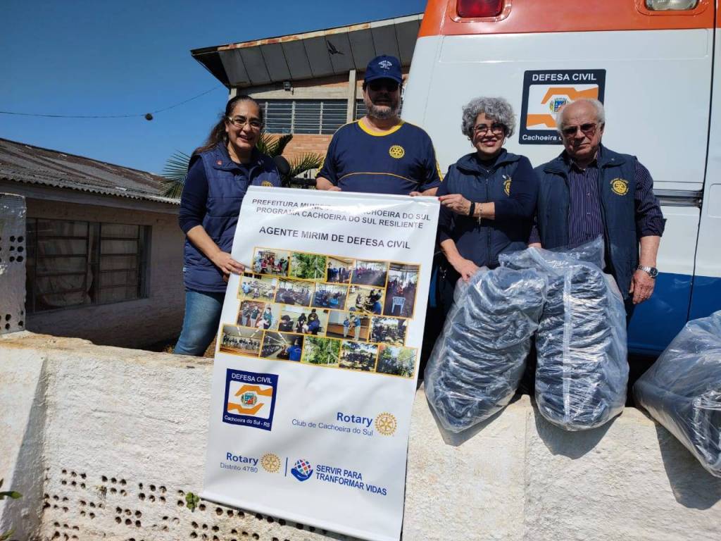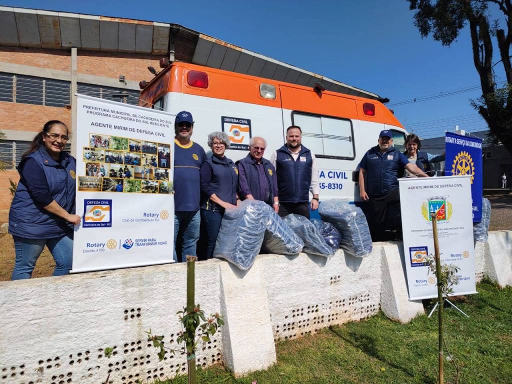 A aquisição do material se deu através de subsídio distrital da Fundação Rotária do Rotary Internacional, que serão empregados no Projeto Agente Mirim de Defesa Civil, que é uma das ramificações do Programa Cachoeira do Sul Resiliente, empregado pela Defesa Civil local.