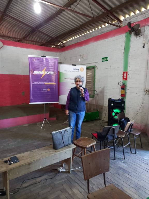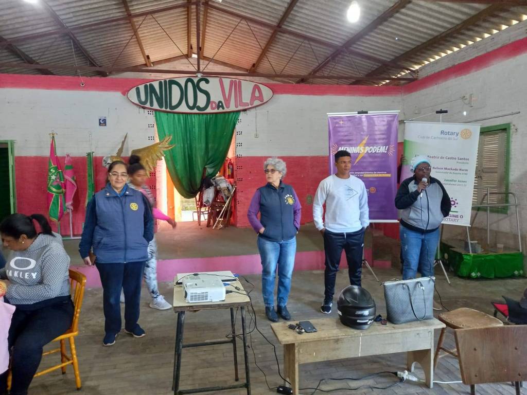 A Comissão de Projetos Humanitários do Rotary Club de Cachoeira do Sul, Elisabel Baptista, apresentou o programa "Meninas Podem", que integra o Projeto Pavimentando Esperanças, para toda a comunidade da SR Unidos da Vila.