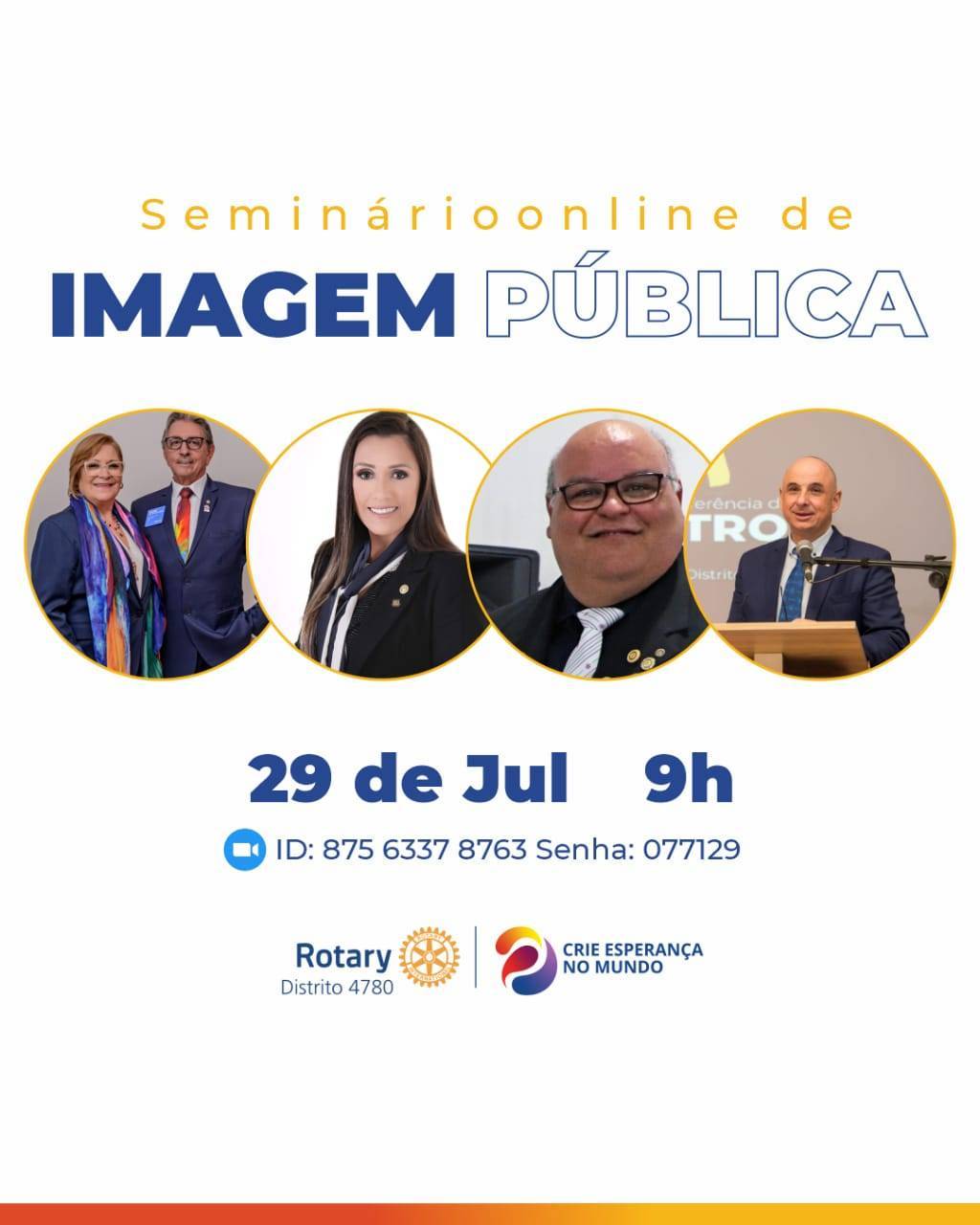 Sábado, 29 de julho, às 9h, via plataforma Zoom o "Seminário Distrital Online de Imagem Pública" do Distrito 4780.