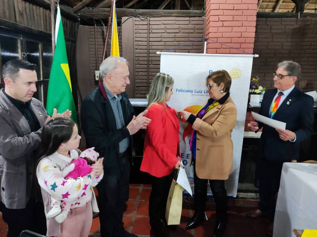Aproveitando a Visita Ofical o Rotary Club de Bagé Sul empossa sua nova companheira Cáren Dutra tendo como padrinho Élio Jorge Coradin.
