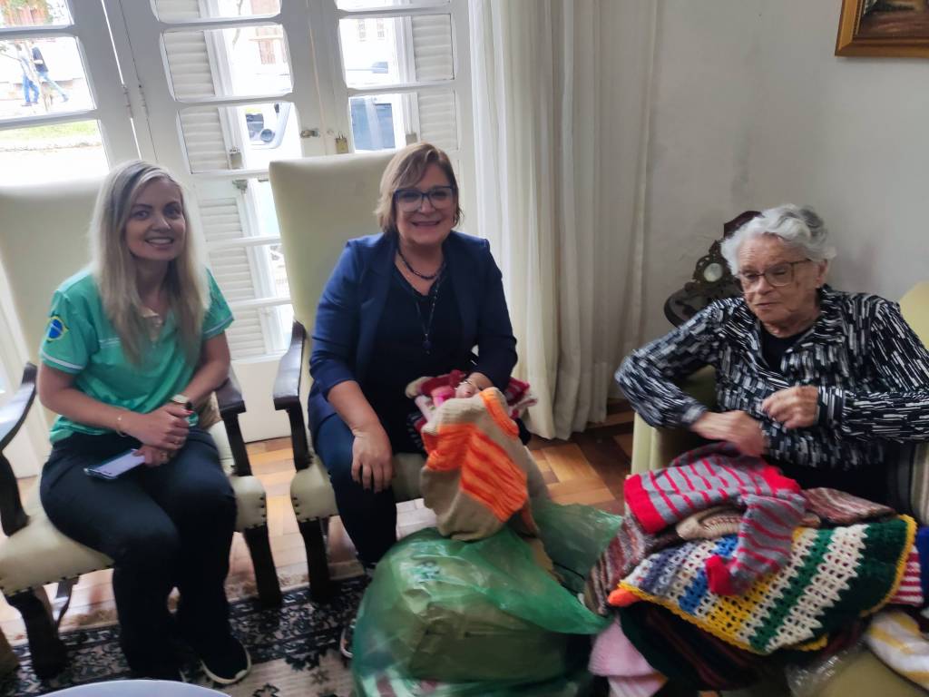 Nas quartas feiras, as amigas se reúnem para confeccionar Blusões para crianças carentes e também para a Escola Rotária E.M.E.I Dr. Pena. Na oportunidade o companheiro Saucedo e sua esposa Dalila visitaram o Governador Warner Bento.