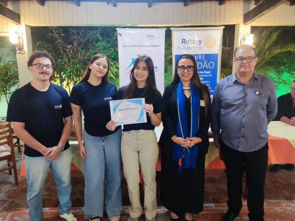 Governadora Patrícia Parreira entrega "Prêmio Por Excelência ao Interact Club de Bagé e destaca que o Rotary International reconhece esse trabalho.