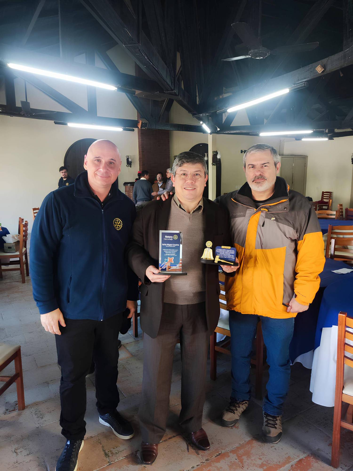 Carlos Magno Cesarino, presidente 2024-25 é homenageado pelo Rotary Club de Bagé e pela Mauren Piegas Governadora Assistente da área 7 ano rotário 2024-25