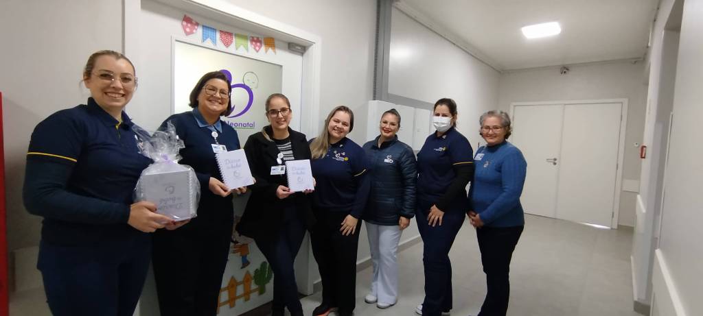 Representando o RC Pérolas do Jacuí, as companheiras Chaiene, Bárbara, Graziela, Daiane e Rosélia, realizaram a entrega dos primeiros diários do Projeto Cuidar, na UTI Neonatal do Hospital de Caridade e Beneficência (HCB), em Cachoeira do Sul.