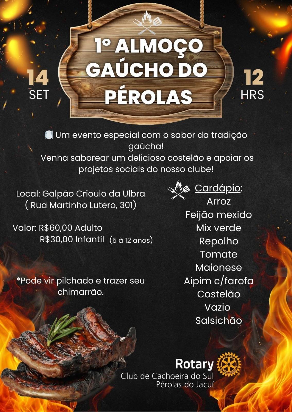 Vem aí o 1º Almoço Gaúcho do Rotary Club de Cachoeira do Sul Pérolas do Jacuí! 🐎✨