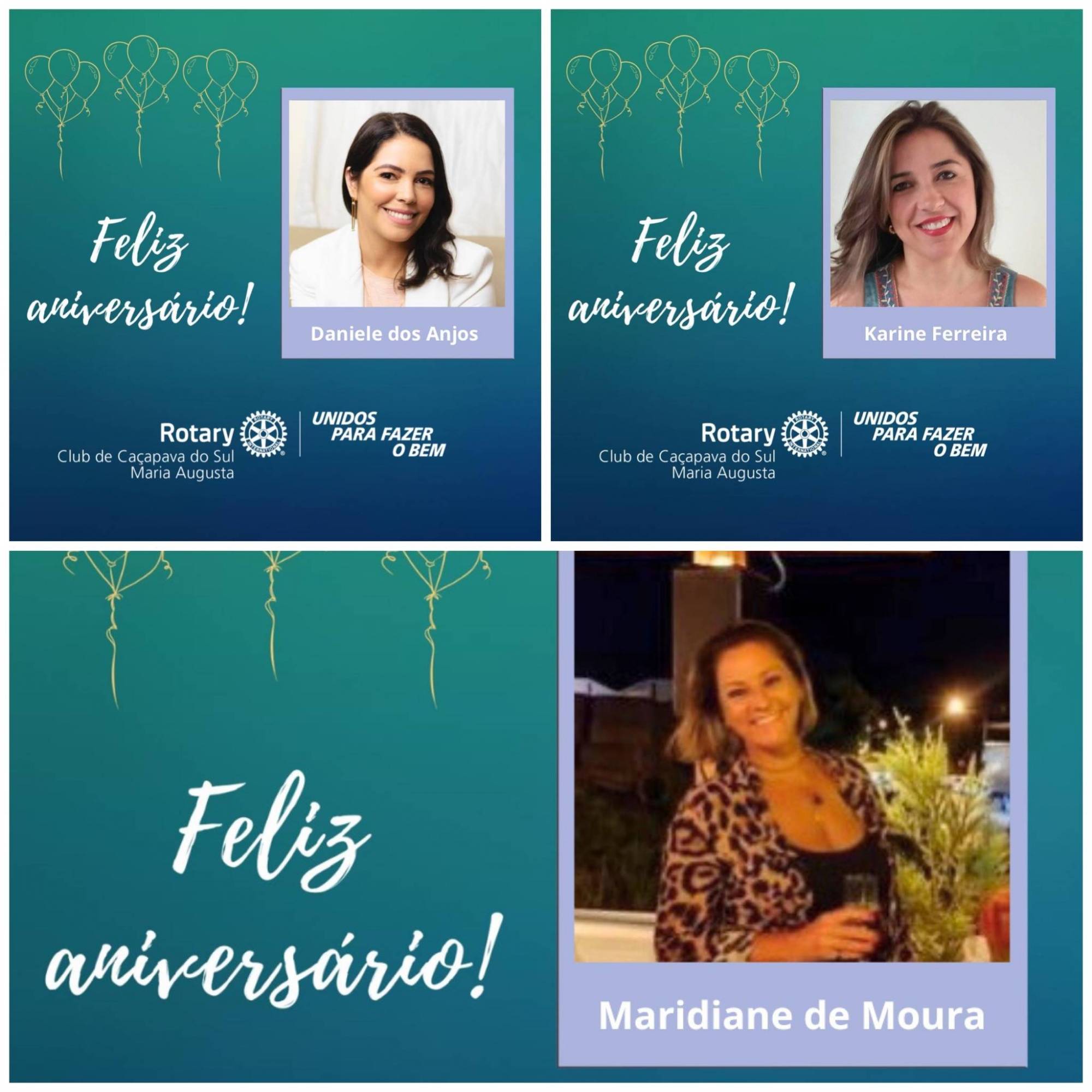 No mês de agosto, celebramos a vida das companheiras Maridiane, Karine e Daniele, com carinho e gratidão. É uma alegria ter vocês e partilhar tantos momentos no nosso Rotary Maria Augusta.