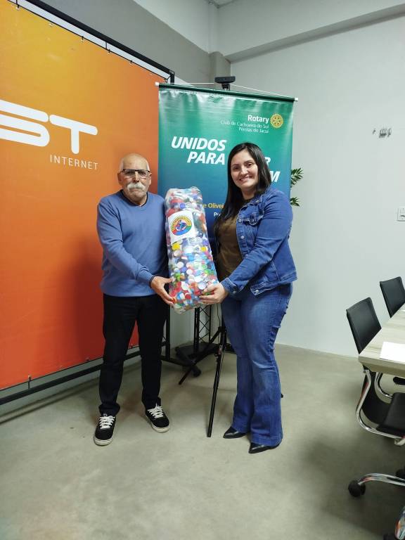 E recebeu das mãos da presidente Daiane Alves as tampinhas da Campanha "CADA TAMPINHA CONTA" desenvolvida pelo nosso clube.