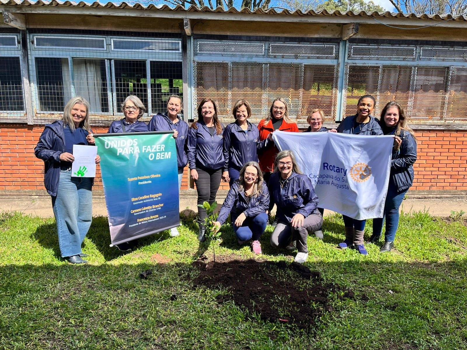 No mês rotário dedicado à Educação Básica e Alfabetização, o Rotary Club Maria Augusta esteve na Escola Eliana Bassi de Melo para plantar uma árvore frutífera, unindo cuidado com a natureza e com o futuro.