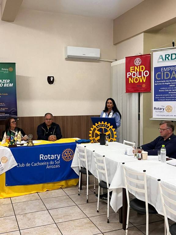 No dia 23 de setembro aconteceu a Assembleia e visita oficial da Governadora Carmen Calvette Brancher do Distrito 4780, ano Rotário 2025-26 ao Rotary Club de Cachoeira do Sul Arrozais. Foi um momento muito especial onde foram apresentadas as ações e projetos do Clube, evidenciando o comprometimento de cada associado. Durante a visita teve posse de mais um integrante do Rotary Kids de Cachoeira do Sul, entrega de doações para a Fundação Rotária, entrega de Título Paul Harris a associada Helenara da Rosa, homenagens, falas da Presidente Vera Paixão e da Governadora Carmen, encerrando com companheirismo. Durante o dia a Governadora também visitou a comunidade onde foi instalada a cozinha industrial do Projeto Global Confeitando o Futuro.