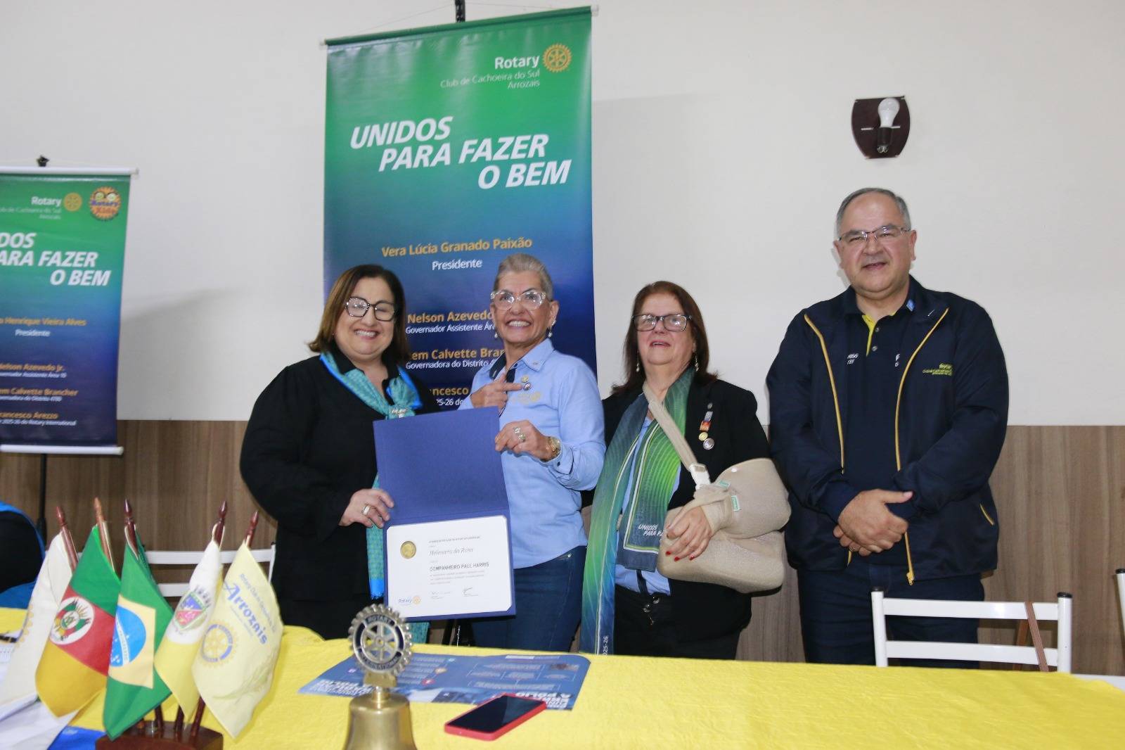 Durante a visita oficial da Governadora Carmem Calvette Brancher ao Rotary Club de Cachoeira do Sul, no dia 23 de setembro, foi entregue o Título Paul Harris para a Presidente 2024-25 Helenara da Rosa. Título Rotário importante, entregue para quem presta serviço de relevante importância para a comunidade. Parabéns para a associada Helenara e gratidão por toda a contribuição ao Clube e ao Rotary Internacional.