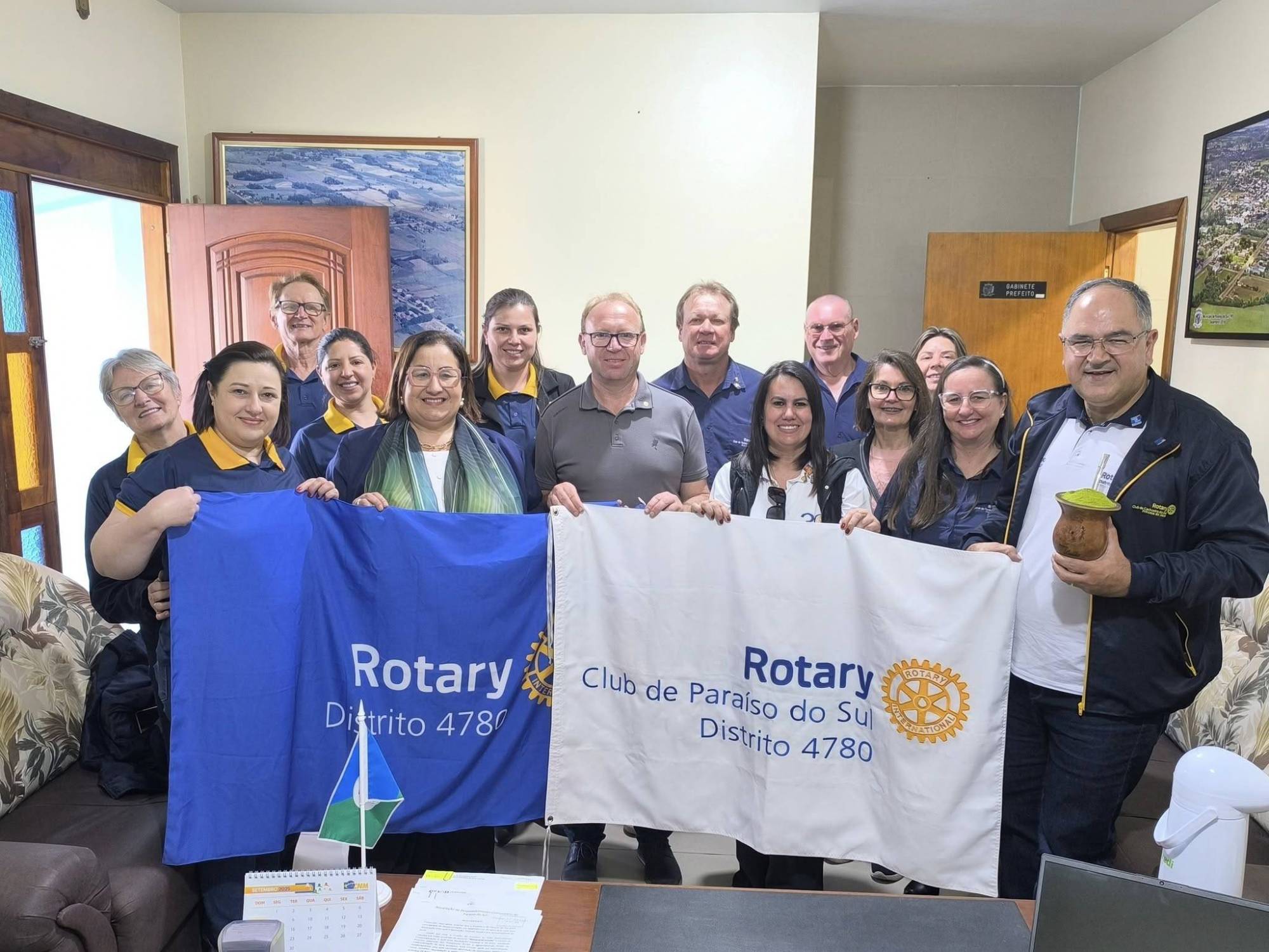 Durante o roteiro da Visita Oficial ao Rotary Club de Paraíso do Sul, no dia 24 de setembro, a Governadora Distrital do Distrito 4780, Carmem Calvette foi recebida pelo prefeito municipal, Clainton Cléo Müller, em seu gabinete, na Prefeitura Municipal. Claiton é companheiro de Rotary e destacou à Governadora a importância das parcerias e do trabalho desenvolvido no Municipio pelo clube de serviços em apoio a diversas causas, entre elas, durante as cheias que atingiram Paraíso do Sul.