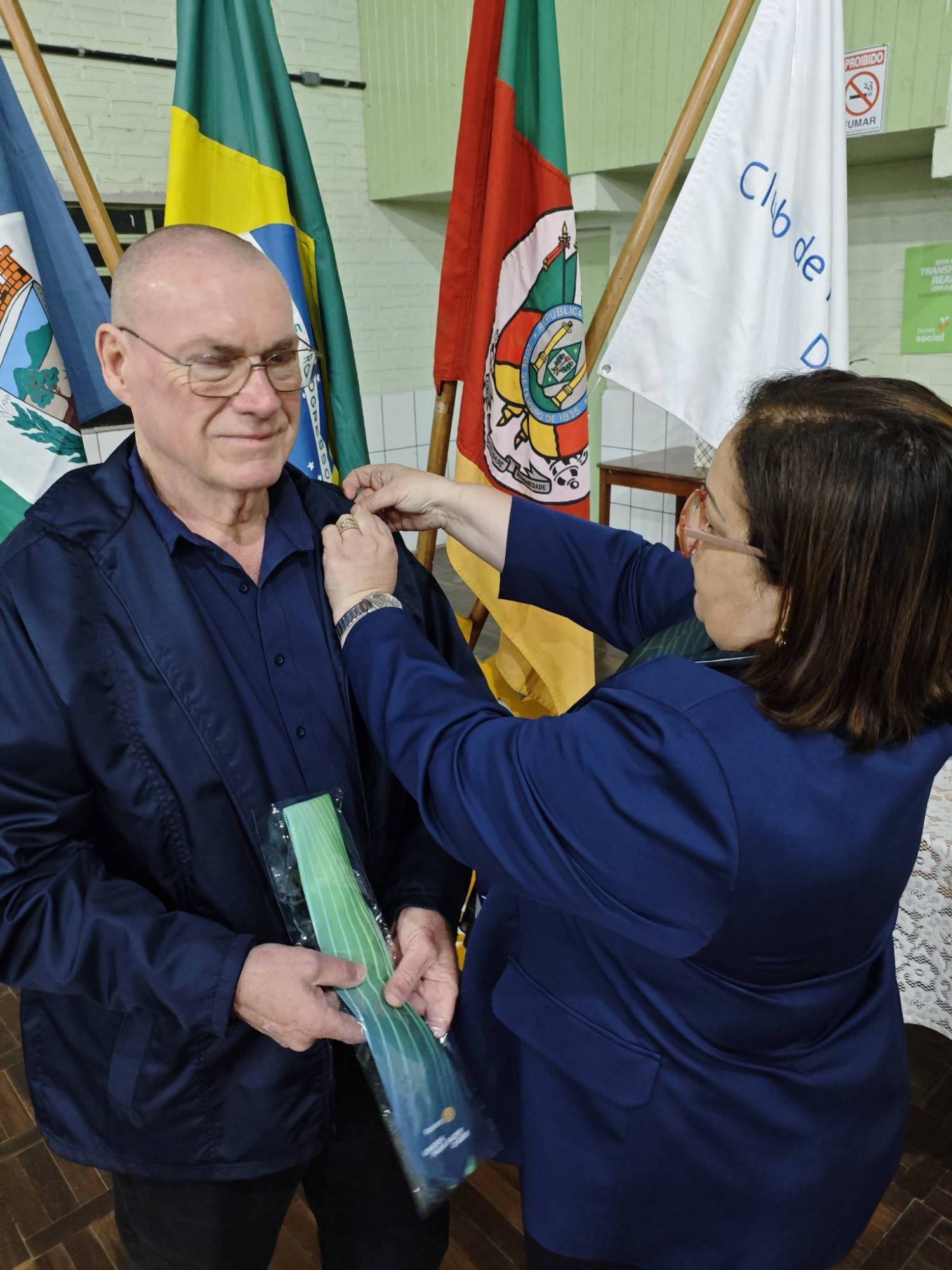 A Governadora Carmem fez a entrega de uma gravata e um pin do Ano Rotário, como homenagem e reconhecimento ao trabalho incansável realizado por Brondani.