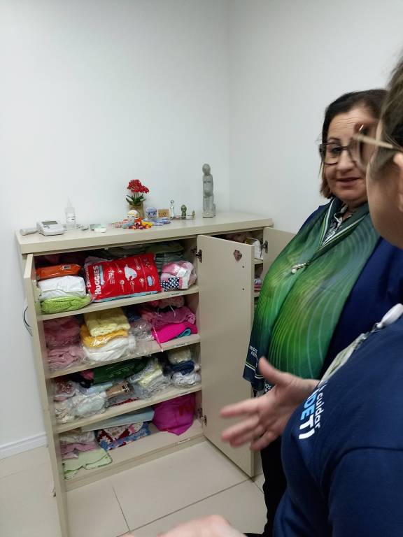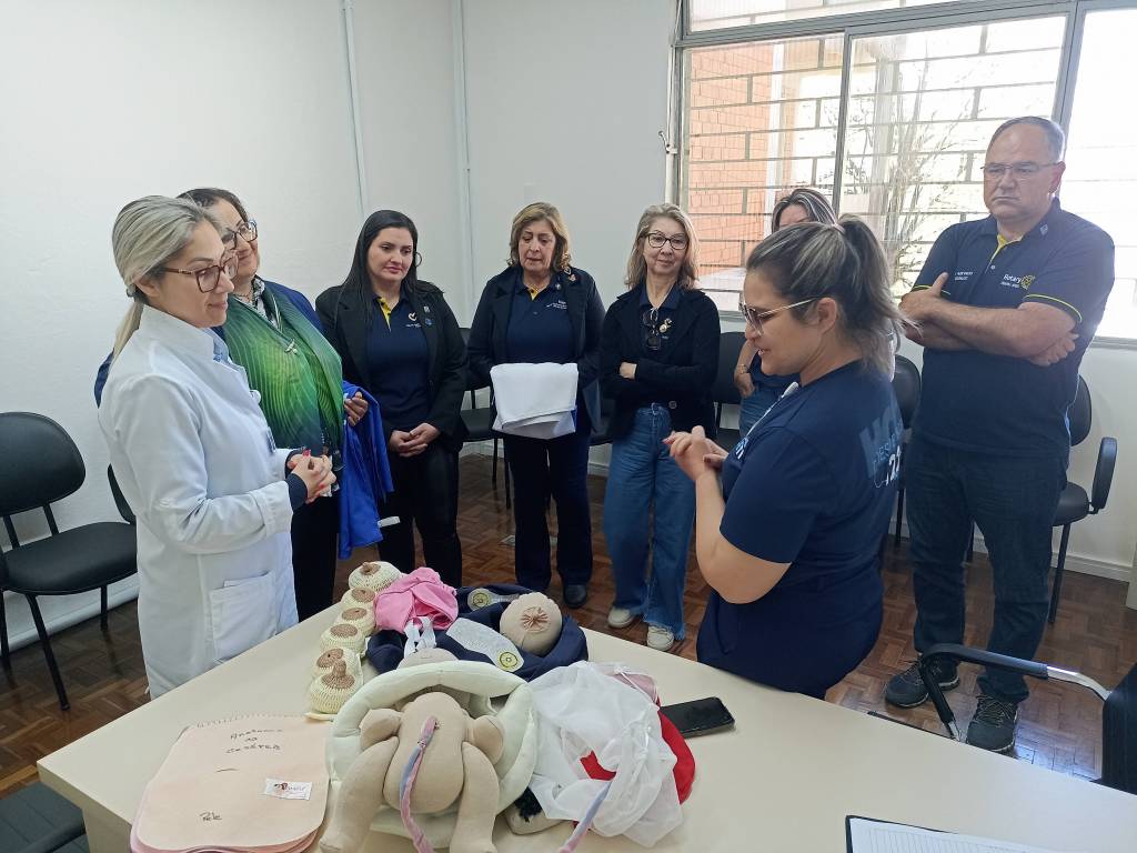 Mais um momento de carinho e cuidado marcou a visita da governadora ao Ambulatório de Especialidades do HCB. O Kit Gestante, doado pelo Rotary Club de Cachoeira do Sul Pérolas do Jacuí, é essencial para que futuras mamães adquiram conhecimentos sobre o parto, os cuidados com o bebê e detalhes importantes, como os diferentes tipos de mamilos.