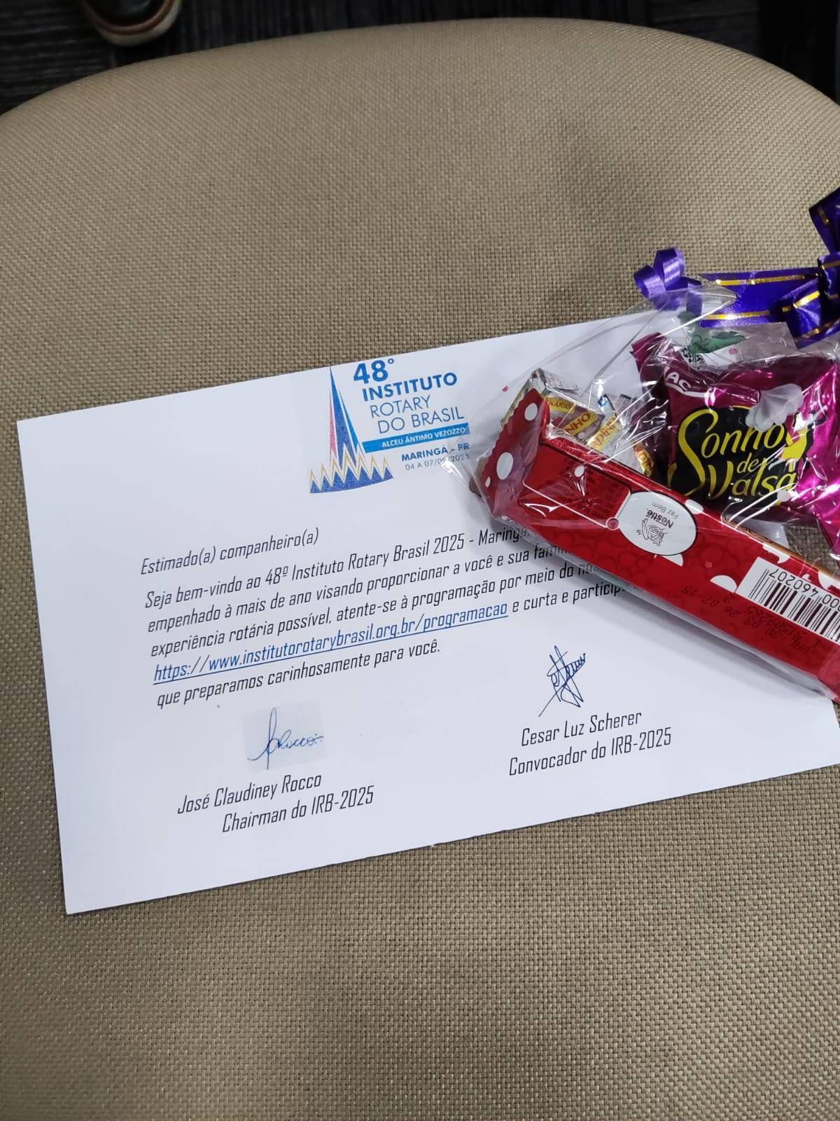 Presidente André Vilaverde recebe as boas vindas no Instituto Rotary Brasil em Maringá, PR