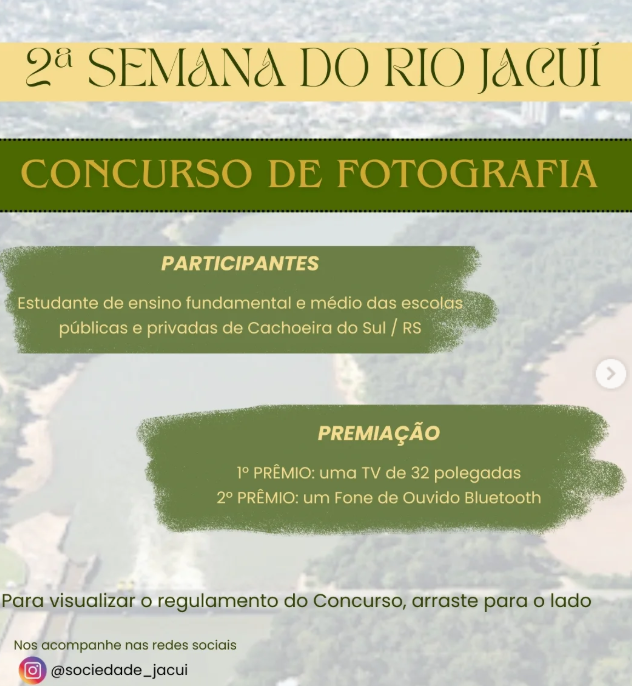 Em comemoração a essa semana tão importante, lançamos o Concurso de Fotografia com o tema "RIO JACUÍ, NOSSA MAIOR RIQUEZA". 🌎