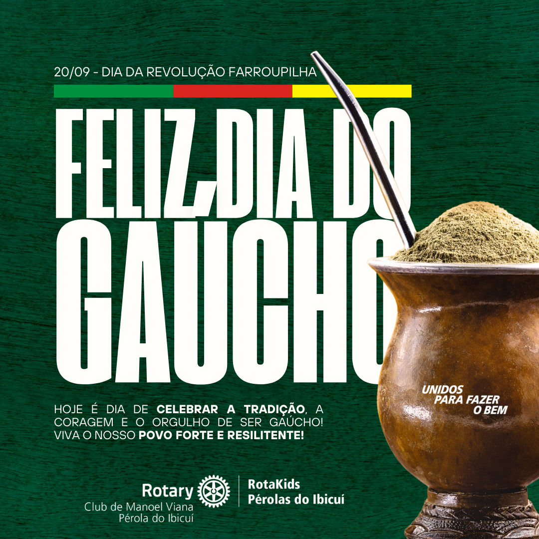 Hoje celebramos a força, a coragem e a tradição do povo gaúcho! Valores como respeito, trabalho, solidariedade e companheirismo, que fazem parte da nossa cultura, também são pilares do Rotary.