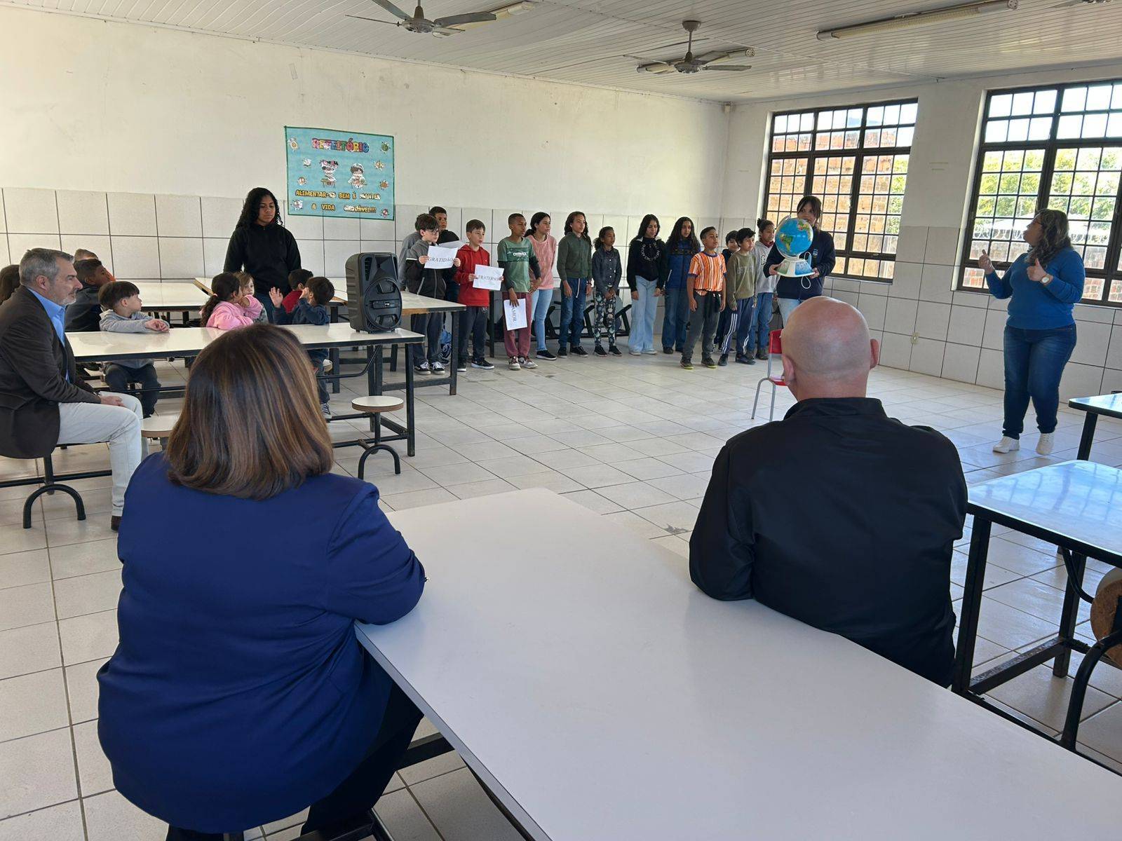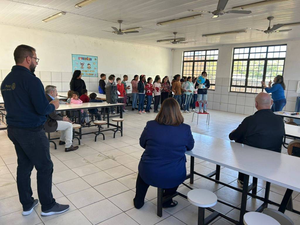 Em ação do Rotary Campanha na E.M.E.F. José de Abreu, Governadora Carmem Calvette Brancher assiste apresentação dos alunos