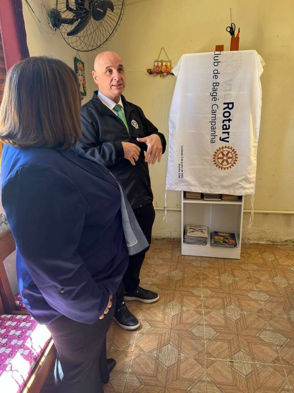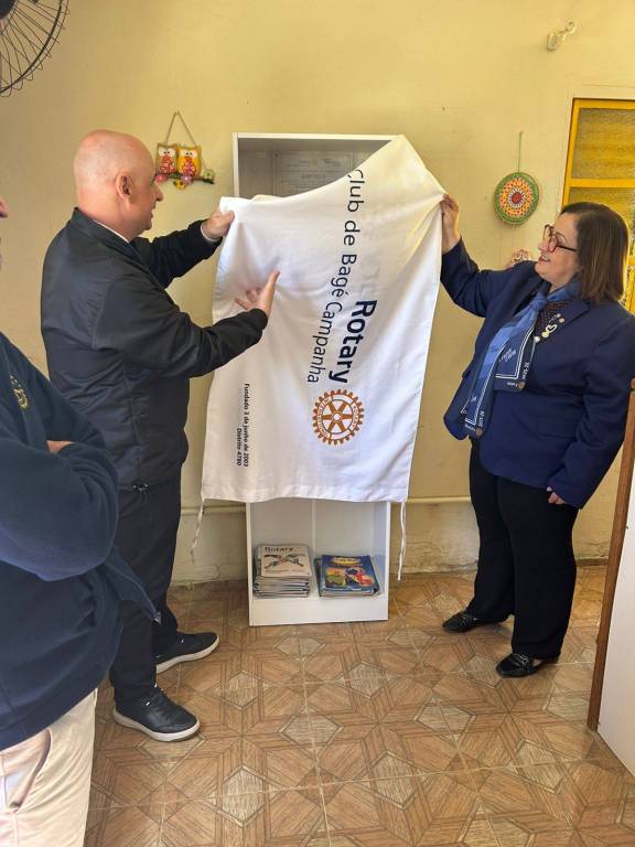 Rotary Bagé Campanha e Governadora Carmem Calvette Brancher inauguram a GIBITECA na E.M.E.F. José de Abreu, projeto com iníciado e coordenado pelo Past-presidente Carlos Magno