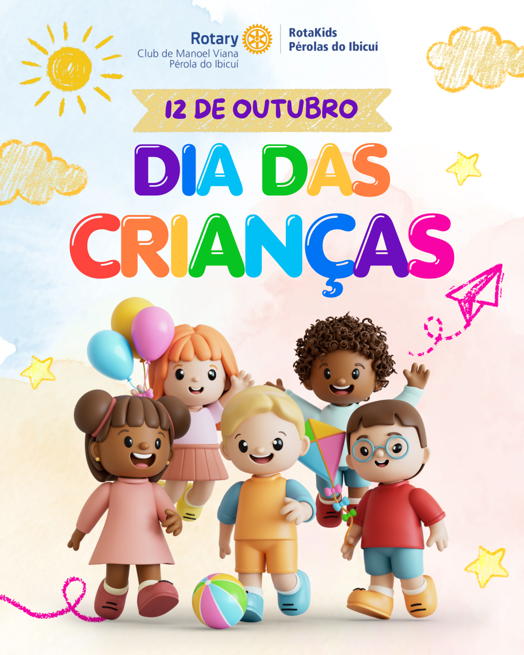 Que neste Dia das Crianças nunca falte alegria, brincadeiras, sonhos e, acima de tudo, amor. Continuem sendo essa luz que transforma o mundo em um lugar mais bonito, gentil e cheio de boas ações!