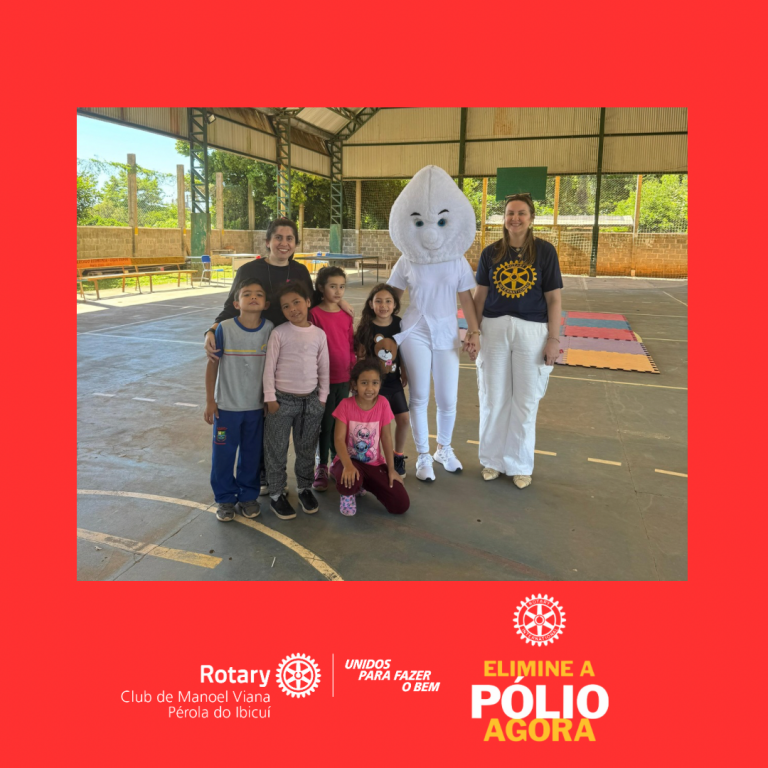 O movimento Rotário, em diversos países, está mobilizado na Campanha de Combate à Poliomielite. No dia 18 de outubro acontece o Dia “D” da vacinação — procure o posto de saúde mais próximo e participe desse movimento!