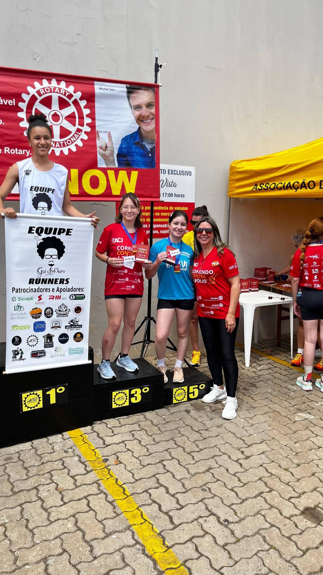 🎖️ Durante a Corrida Contra a Pólio, nossa companheira Fabiane, representando o Rotary Club de Cachoeira do Sul Pérolas do Jacuí, teve a alegria de realizar a entrega das medalhas às jovens atletas do Colégio Totem! 🏃♀️💙