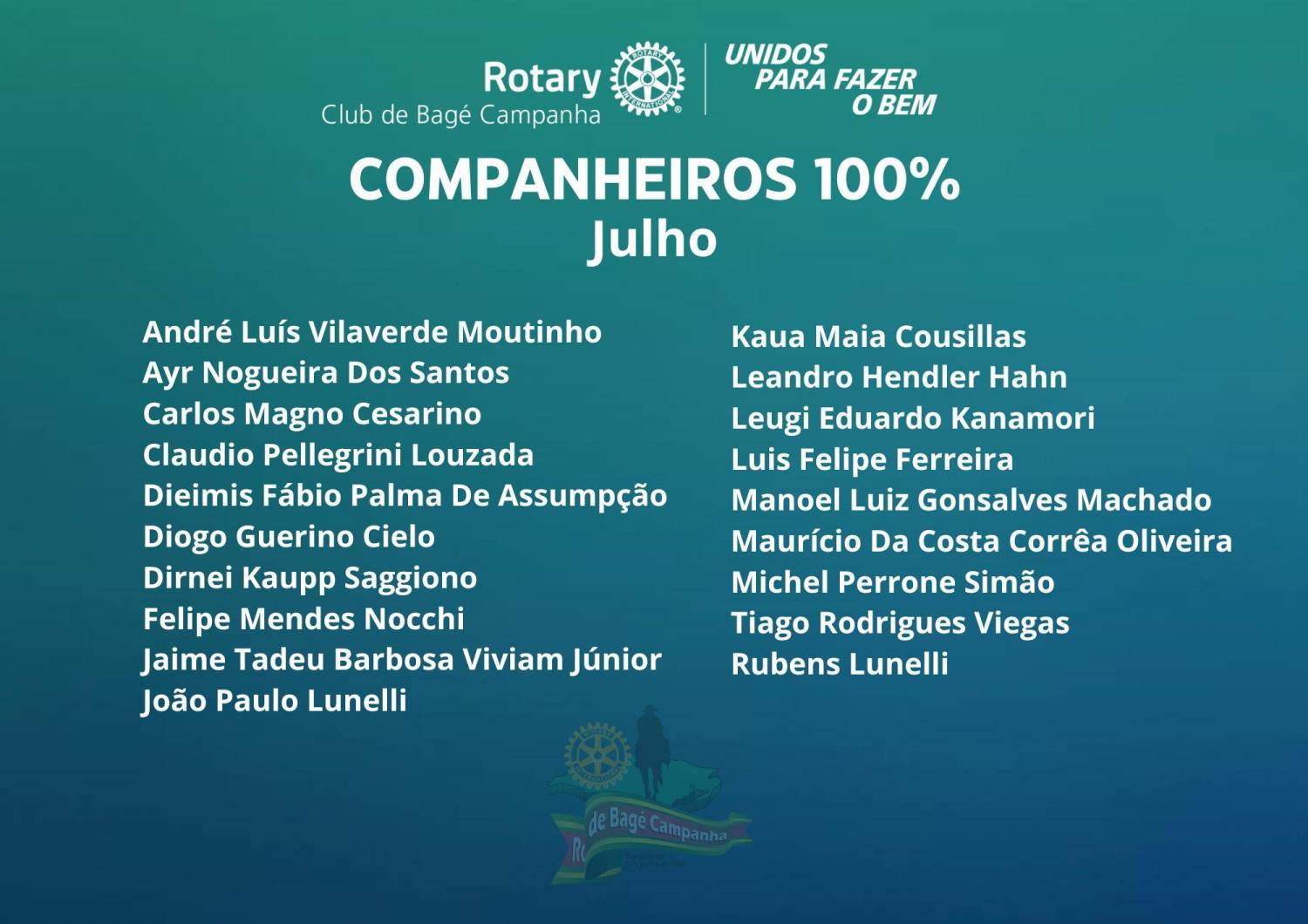 Rotary Bagé Campanha apresenta seus companheiros 100% do mês de julho