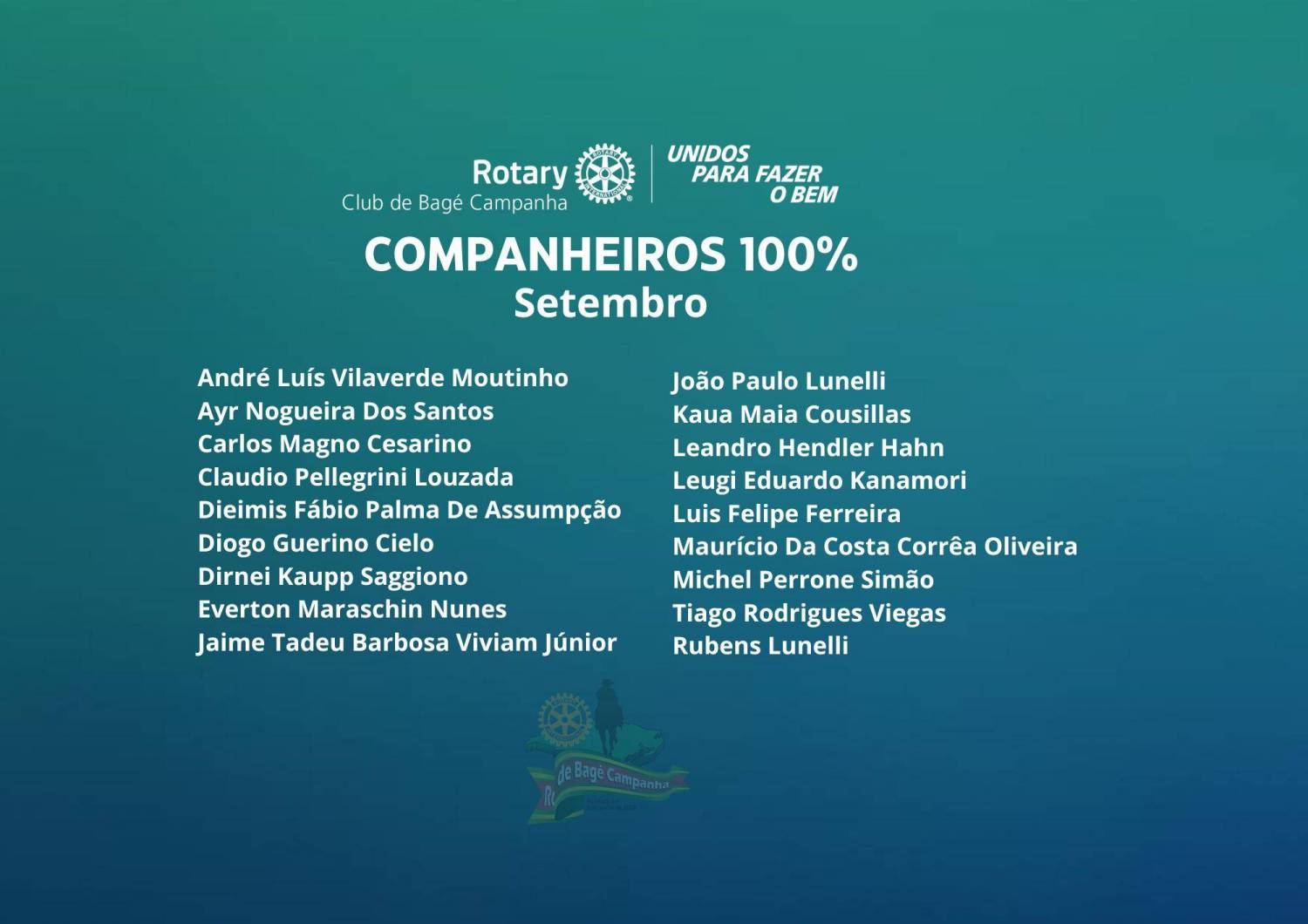 Rotary Bagé Campanha apresenta seus companheiros 100% do mês de setembro